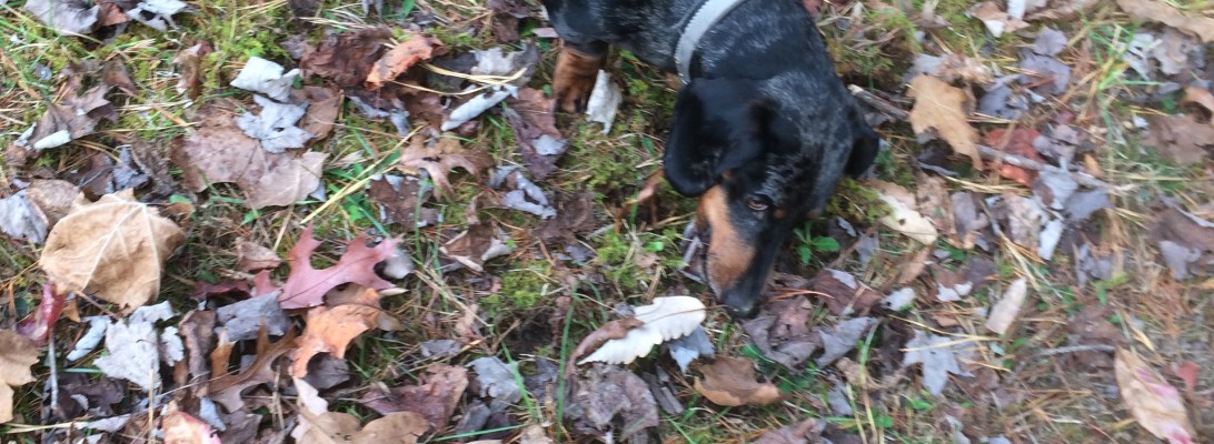 If you notice in the picture, Lightning has what appears to be a rock in his mouth. It is a rock.  Every time Hattie goes to the trampoline, Lightning tags along.  The very first thing he does on arrival is to look for a mouth size rock.  He digs vigorously around the edges of the rock and uses his paws to dig it out of its resting place.  He then makes sure it is the correct size.  His rock is never just any rock–it has to be just right.